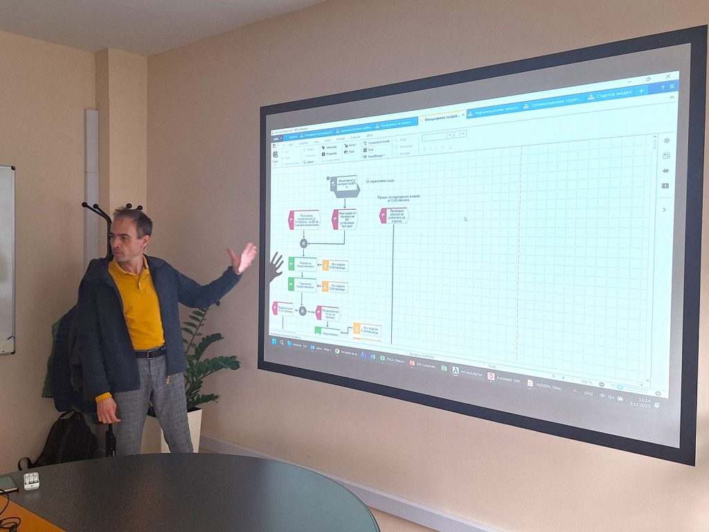В срещата присъстваха студенти от програмите „Стратегическо управление“ и „Стратегически мениджмънт“, акредитирана от AMBA, които изучават бизнес моделиране. Инициативата бе организирана от д-р Борис Борчев, ръководител направление „Бизнес софтуер“ в ТехноЛогика и преподавател в Стопанския факултет.