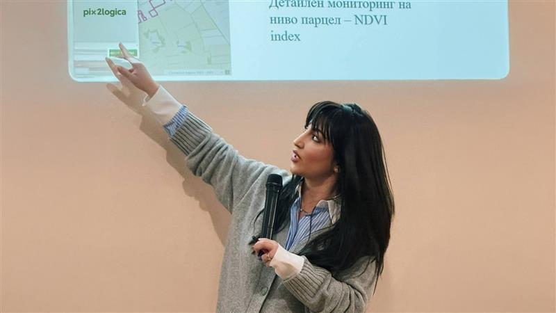 Екипът на ТехноЛогика провежда серия обучителни семинари за земеделски производители на тема „Специализирани спектрални индекси, извлечени от дистанционни данни“. Васил Василев, продуктов мениджър на решения за сателитно наблюдение и Доника Балева-Господинова, експерт „Програми и проекти“ демонстрират как Pix2Logica подпомага прецизното земеделие.